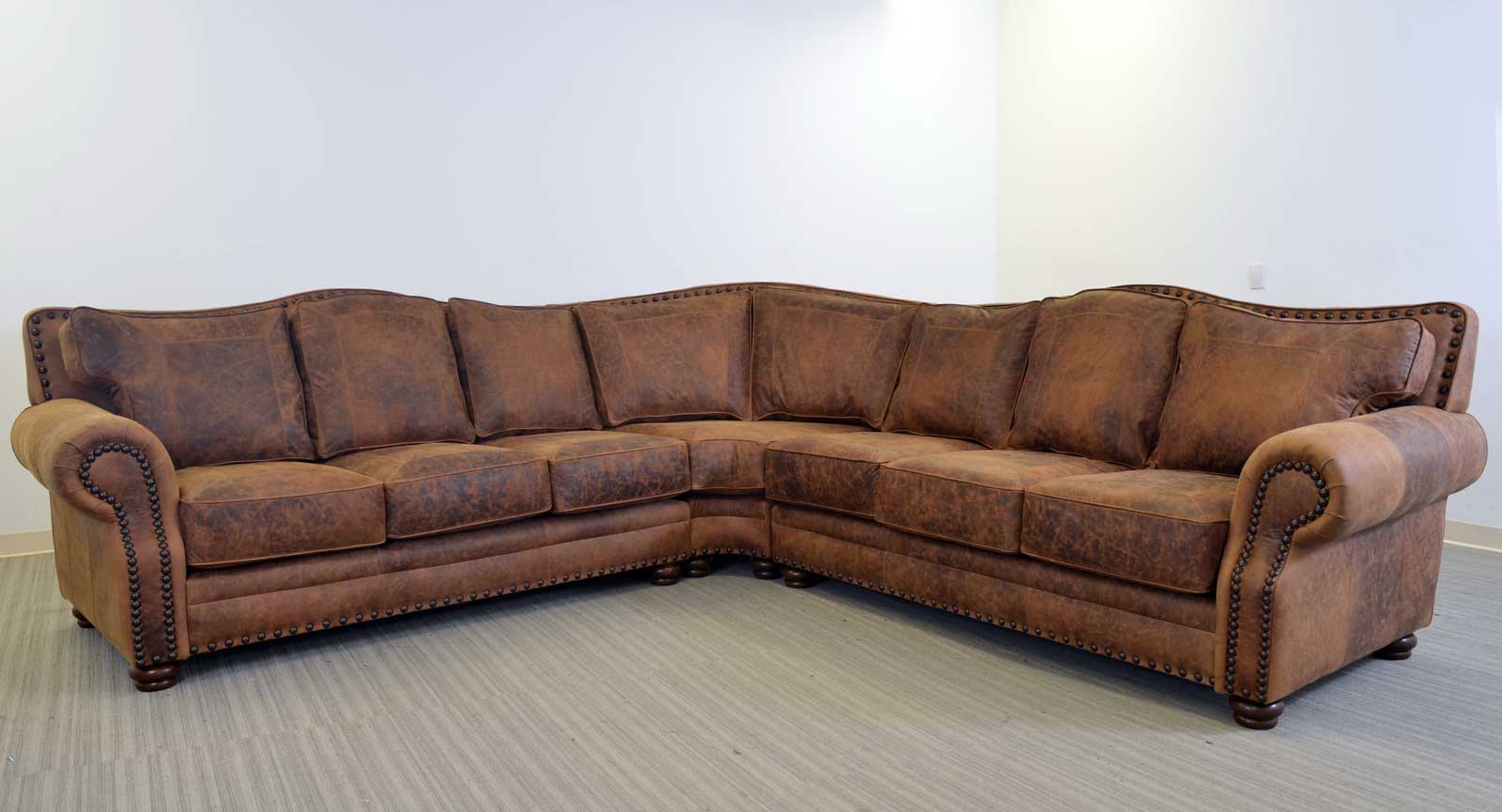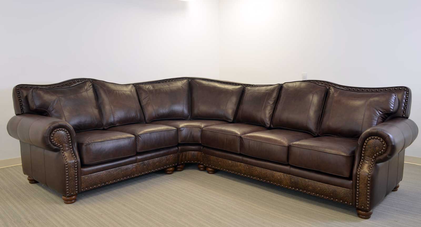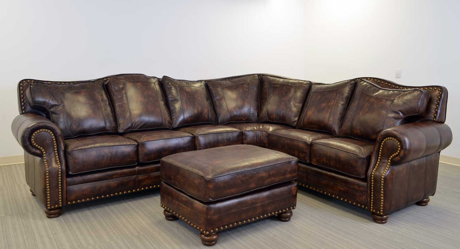The large scale and flowing lines of the Kennedy, have made this one of our most popular creations. Customize the sofa to your particular style with an almost limitless choice of leather, tooled leather, hair on hide, welt, stitch, legs, nails and trim. The Kennedy is available in a variety of group and sectional components.