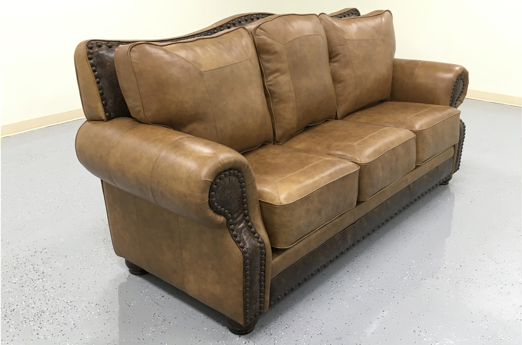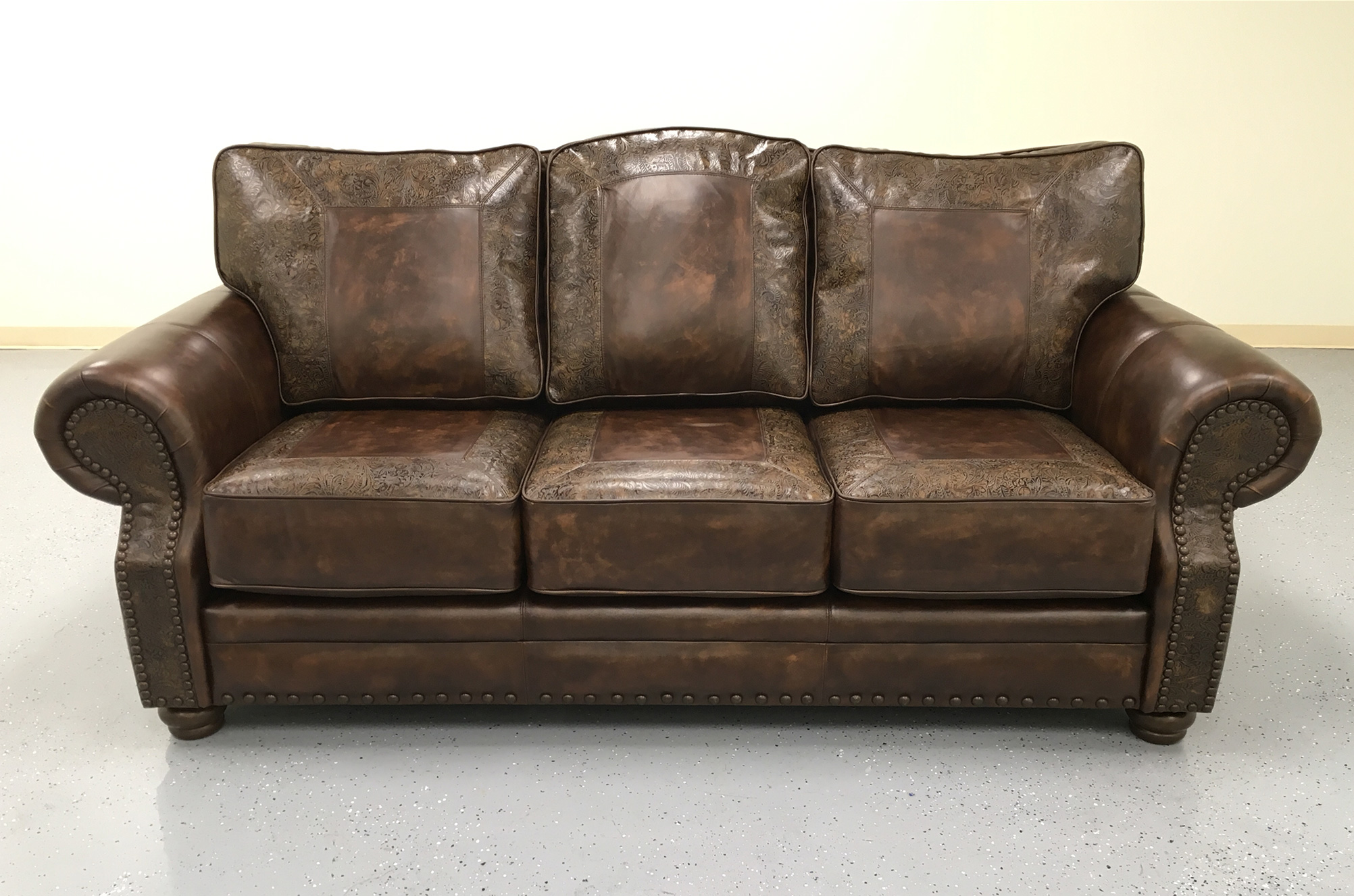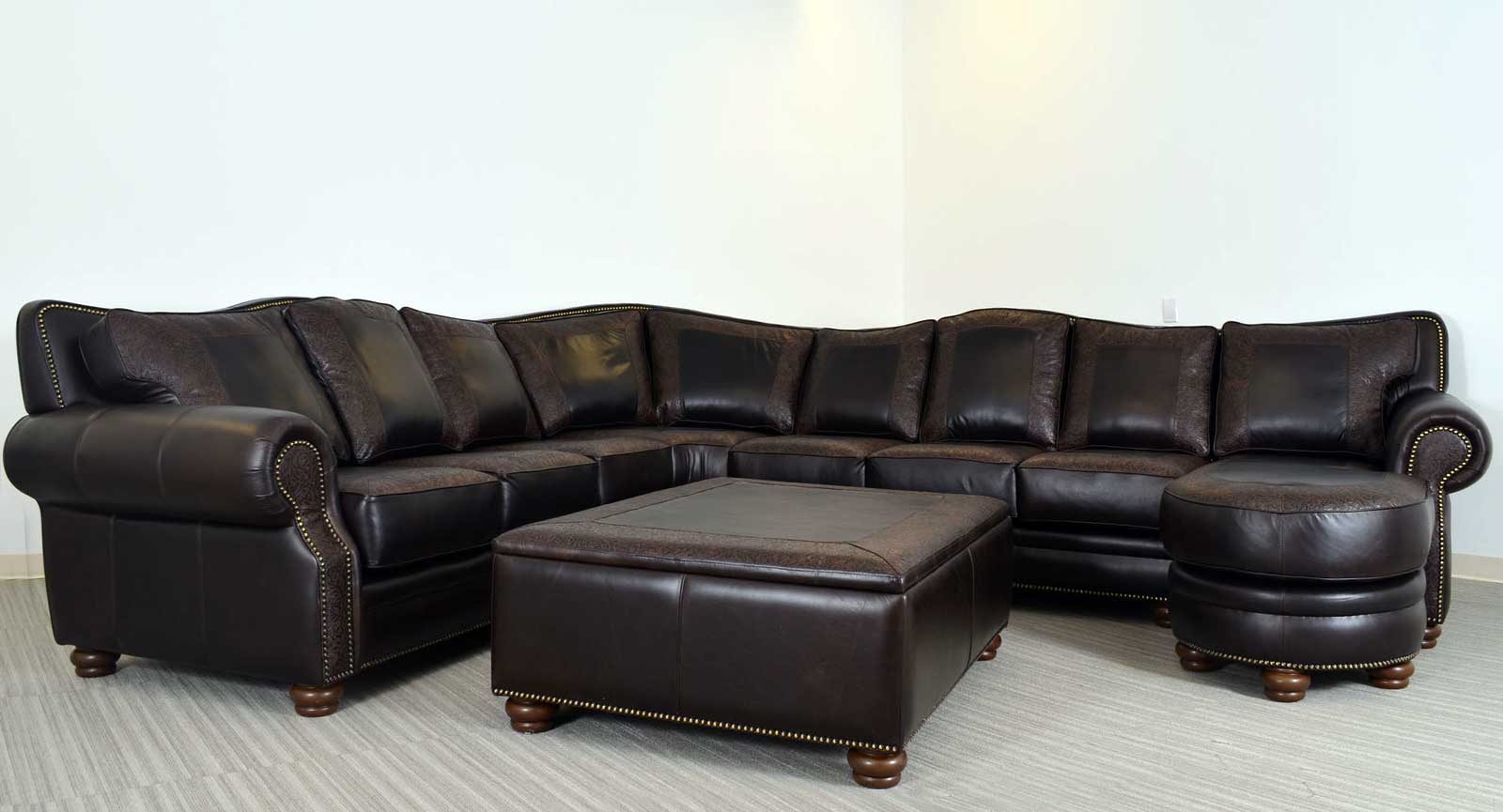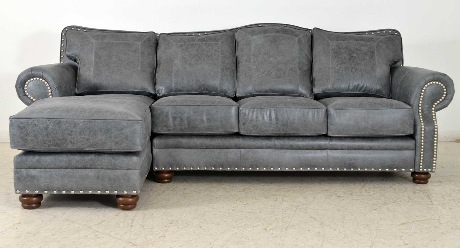 The large scale and flowing lines of the Kennedy, have made this one of our most popular creations. Customize the sofa to your particular style with an almost limitless choice of leather, tooled leather, hair on hide, welt, stitch, legs, nails and trim. The Kennedy is available in a variety of group and sectional components.
