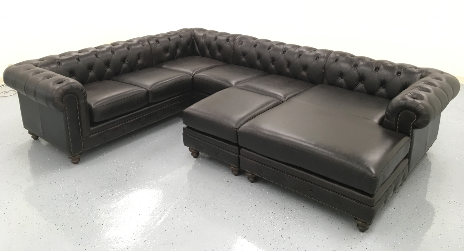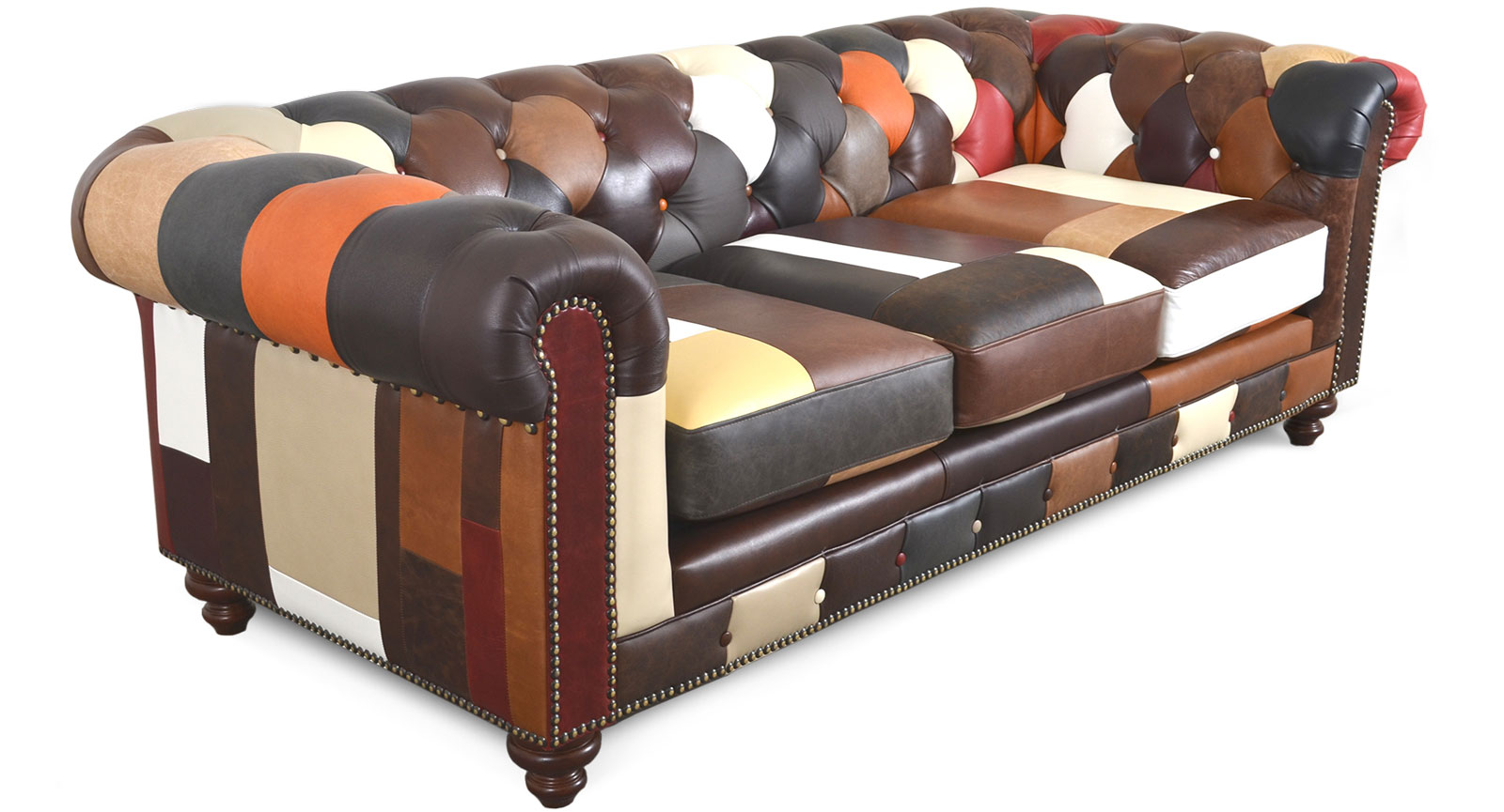 Unsure of a color of leather? Build your sofa with custom Patchwork leather. (Below)